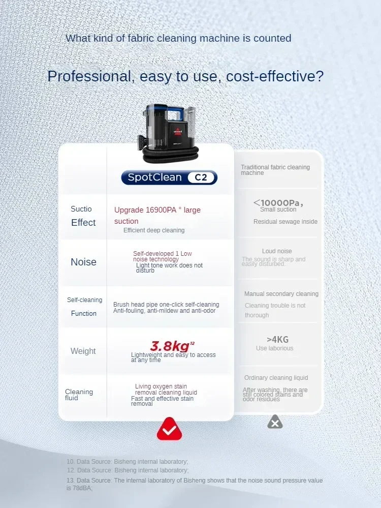 Hign-concerned Chemical : None Certification : ce Voltage (V) : 220V Power (W) : <500w Function : Wet and Dry Brand Name : Esyhey Origin : Mainland China brand : BISSELL Model : 3861Z Maximum noise : 78.3dBA Special nozzle type : Flat nozzle 3C certificate number : 2024010708614383 Sewage tank capacity : 819ml Maximum suction power : 16900Pa function : wet and dry Fabric cleaning machine type : Household wired Water tank capacity : 930ml Body weight (including battery) : 3.8kg Line length : 4.3m power : 370W