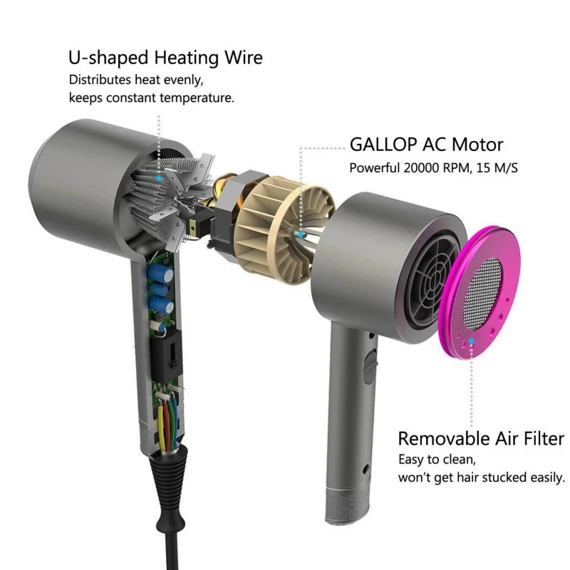 Leafless Professional Hair Dryer Powerful Wind Salon Negative Ionic Blow Air Hair Dryer Blow Dryer Portable $146.95